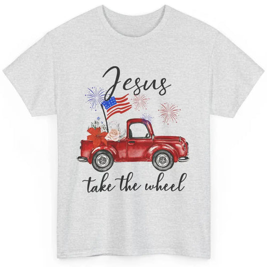 4th Of July Jesus Take The Wheel Red Truck Watercolor God Classic Unisex T-Shirt