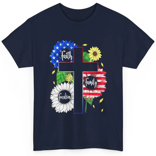 4th July American Flag Cross Faith Family Freedom Christian Classic Unisex T-Shirt
