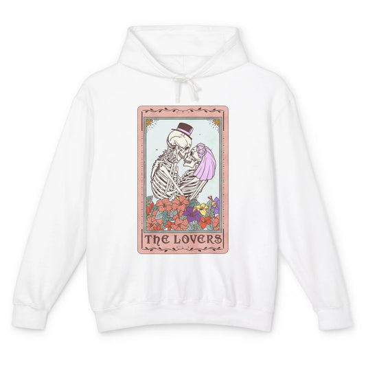 The Lovers Funny Skeleton Couple Tarot Card Vintage Valentine Astrology Goth Skull Lover Floral Heart Unisex Lightweight Hoodie