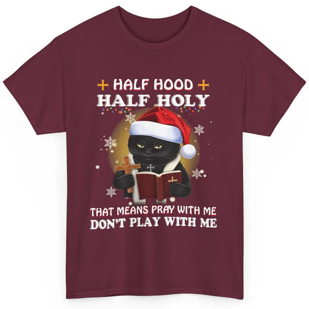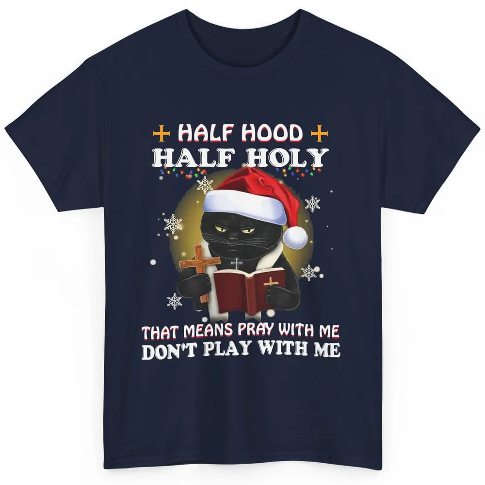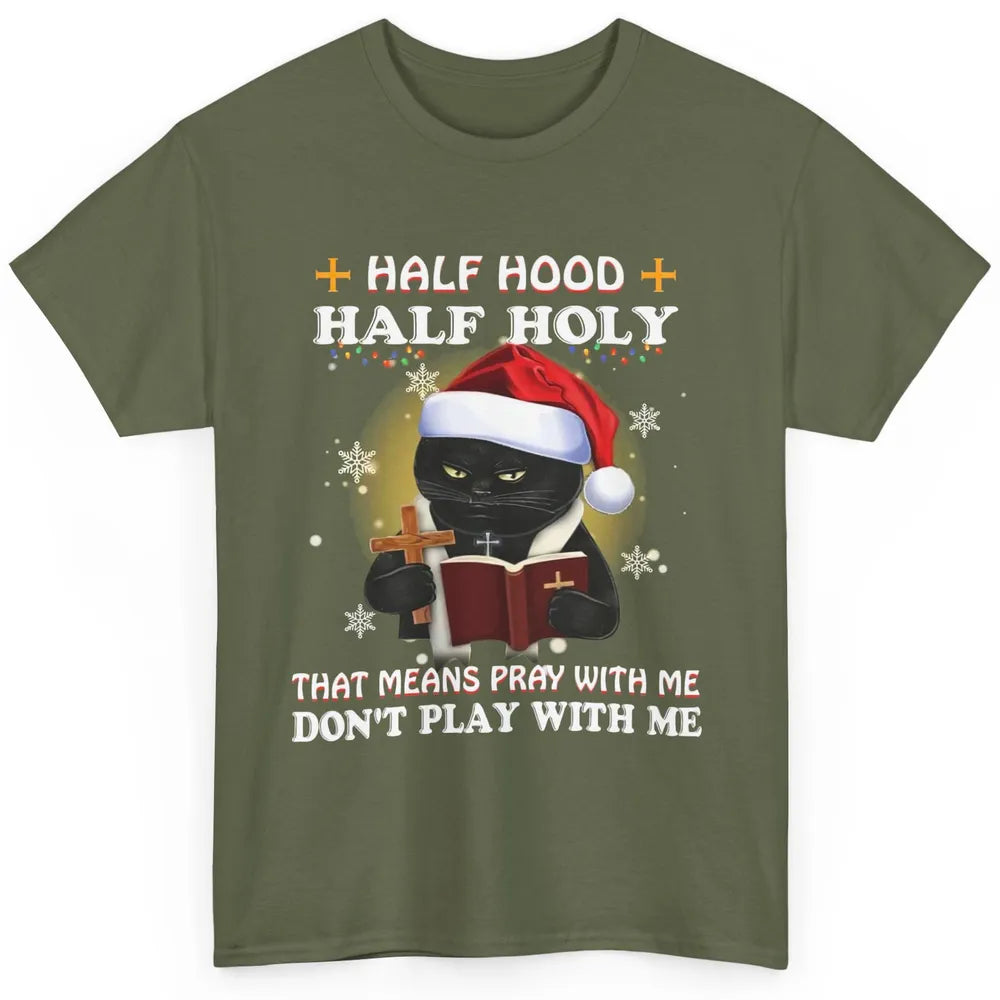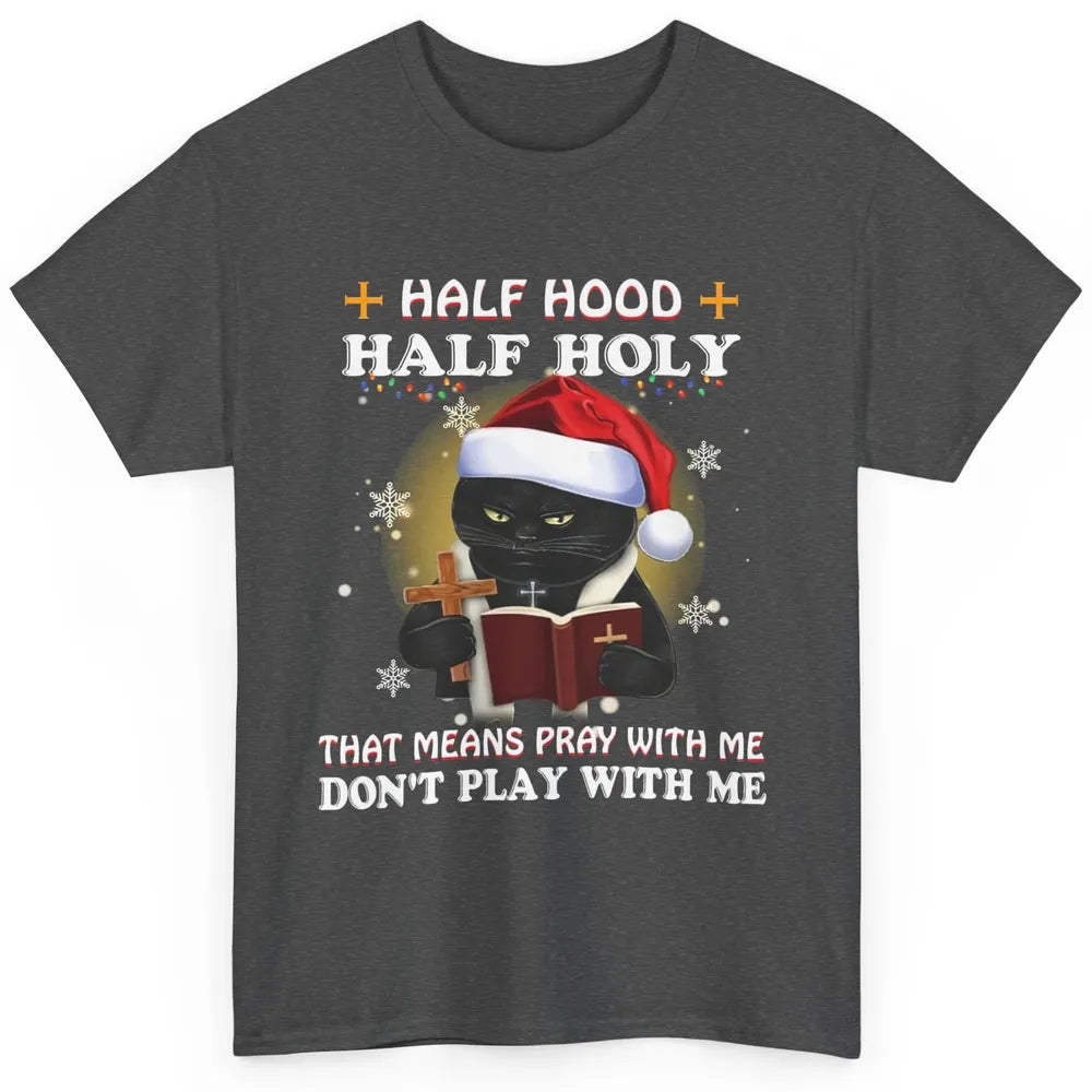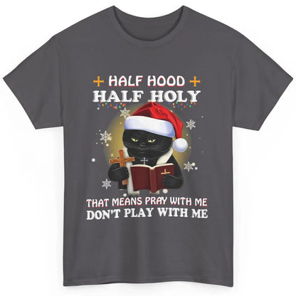 Black Cat Santa Half Hood Half Holly Christmas Bible Verse Classic Unisex T-Shirt