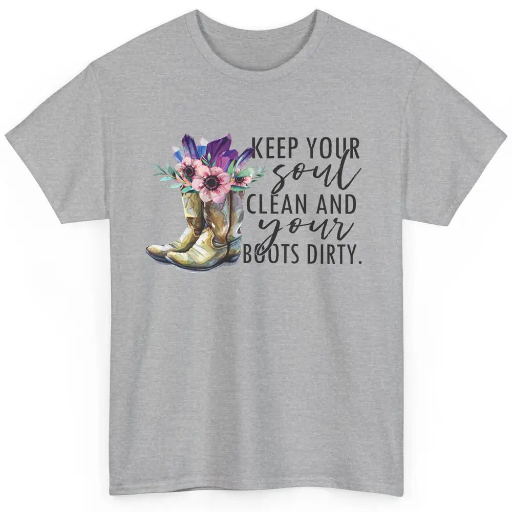 Floral Cowboy Boots Keep Your Soul Clean Boots Dirty Western Classic Unisex T-Shirt