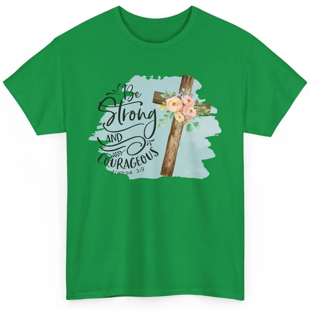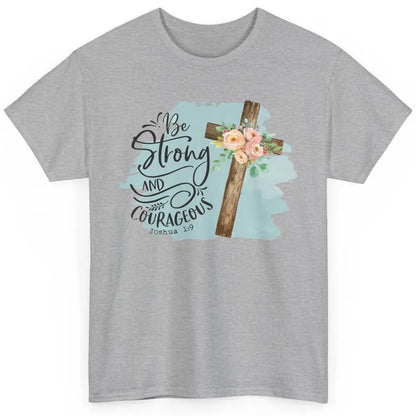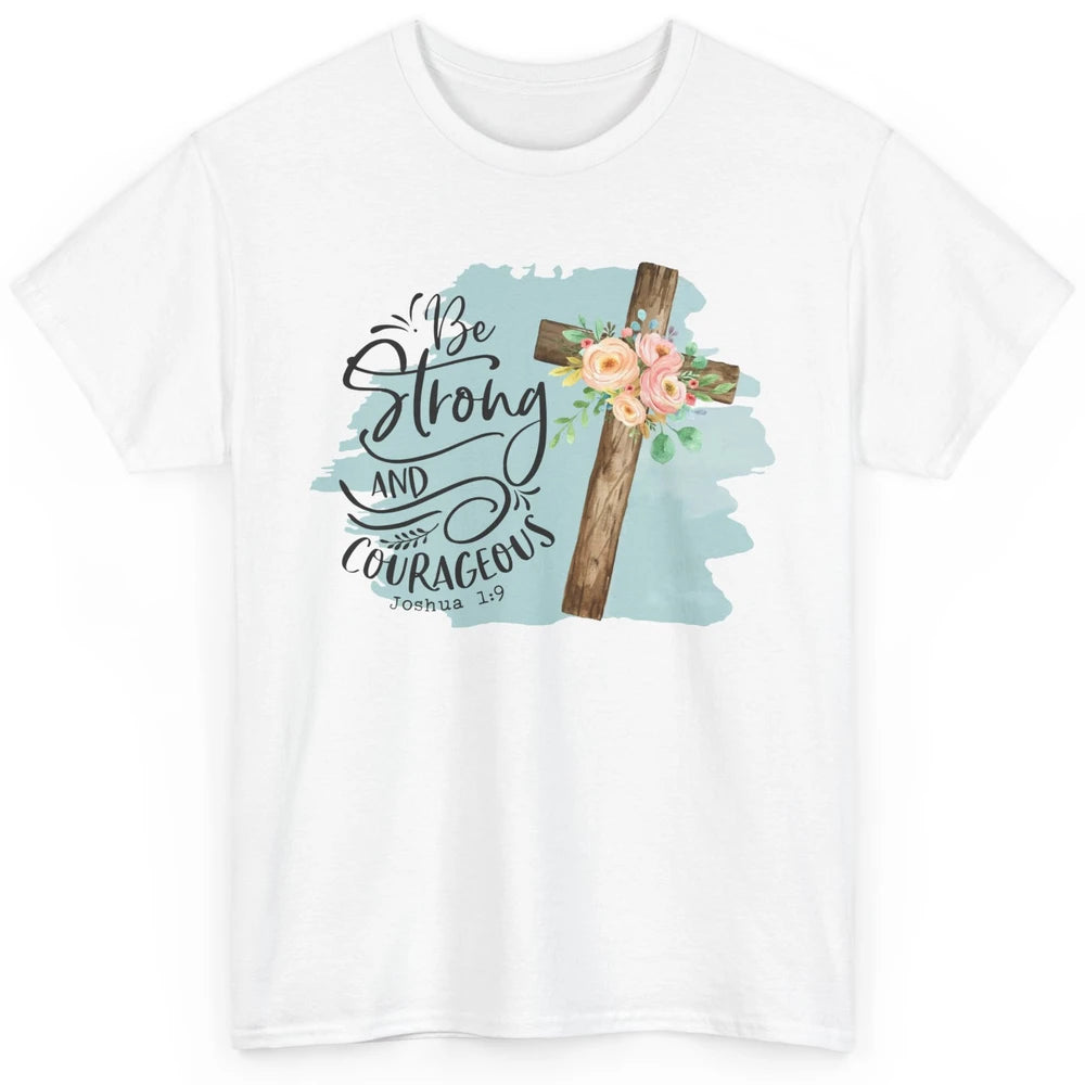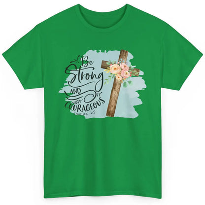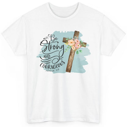 Floral Jesus Cross Be Strong And Courageous Bible Christian Classic Unisex T-Shirt