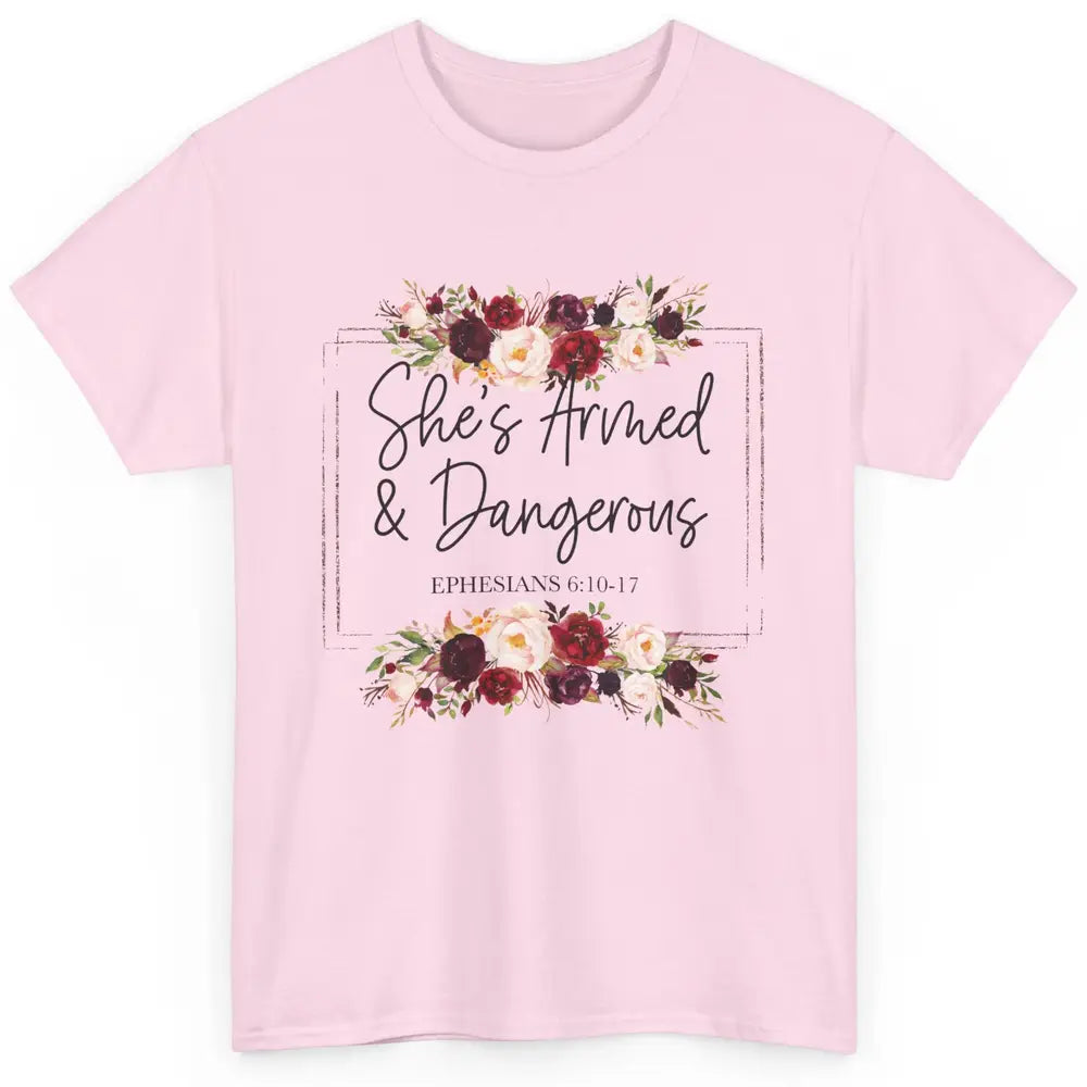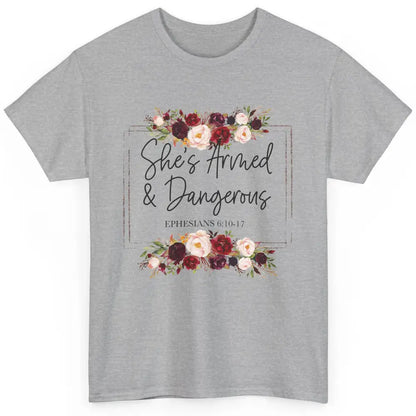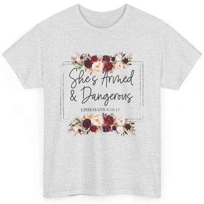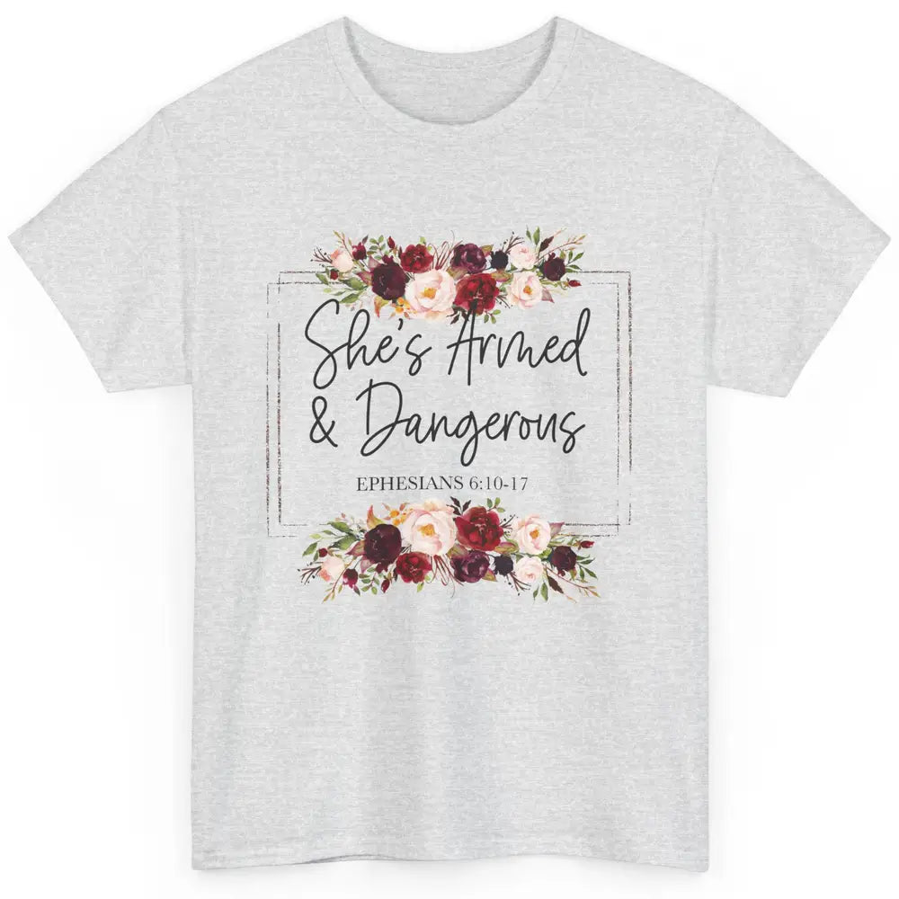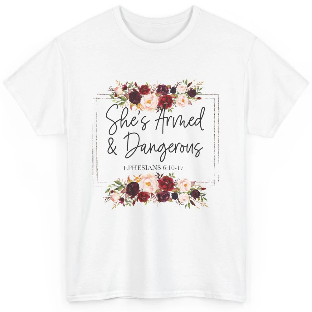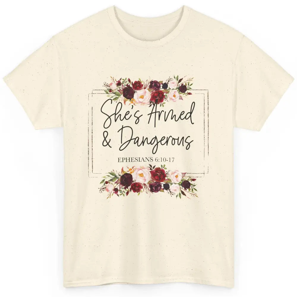 Floral She's Armed And Dangerous Bible Verse Christian Faith Classic Unisex T-Shirt