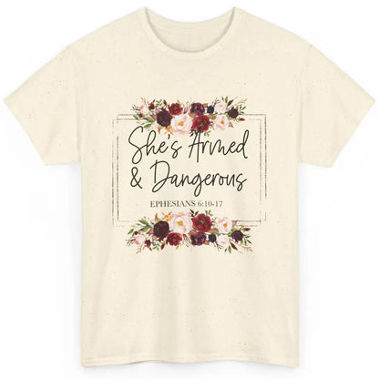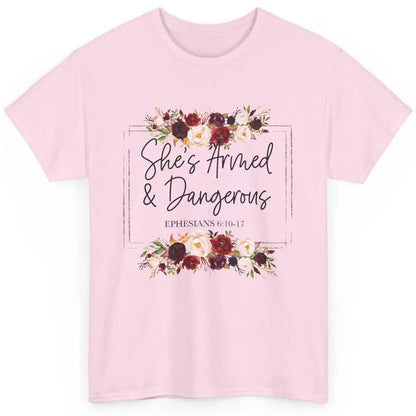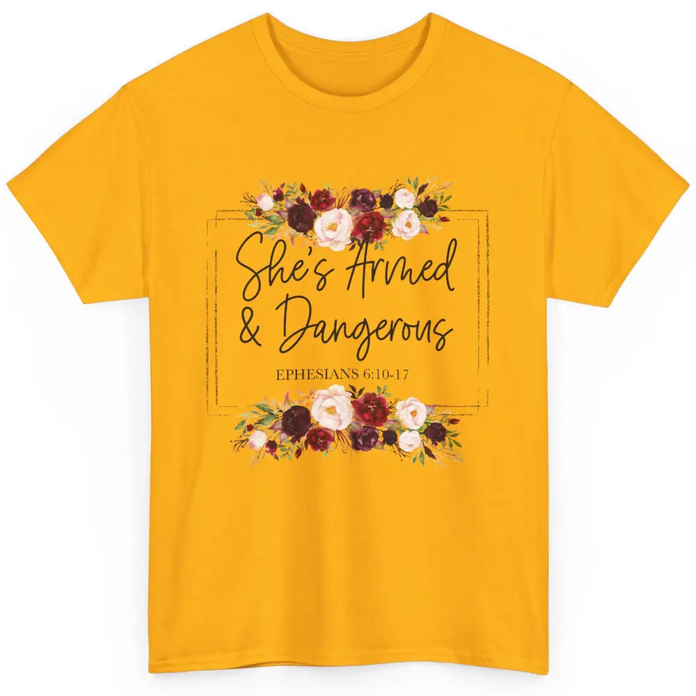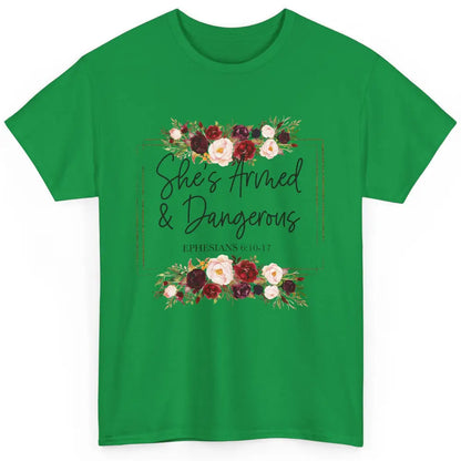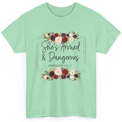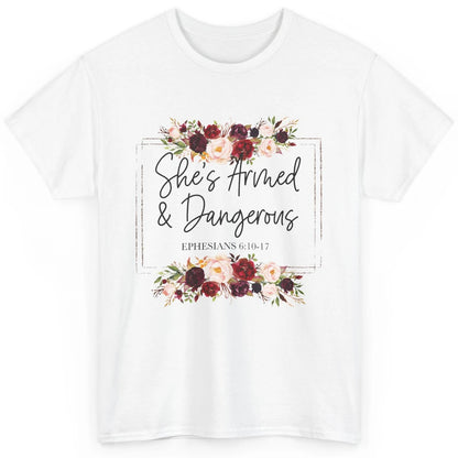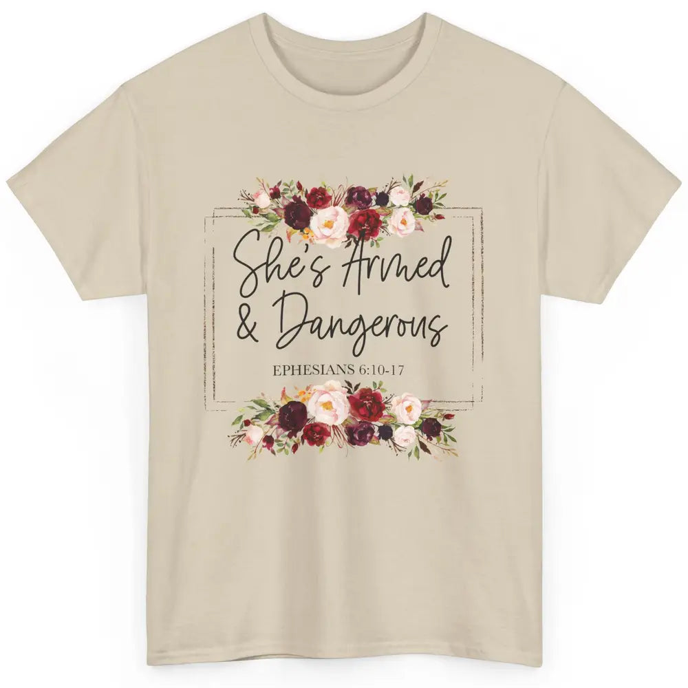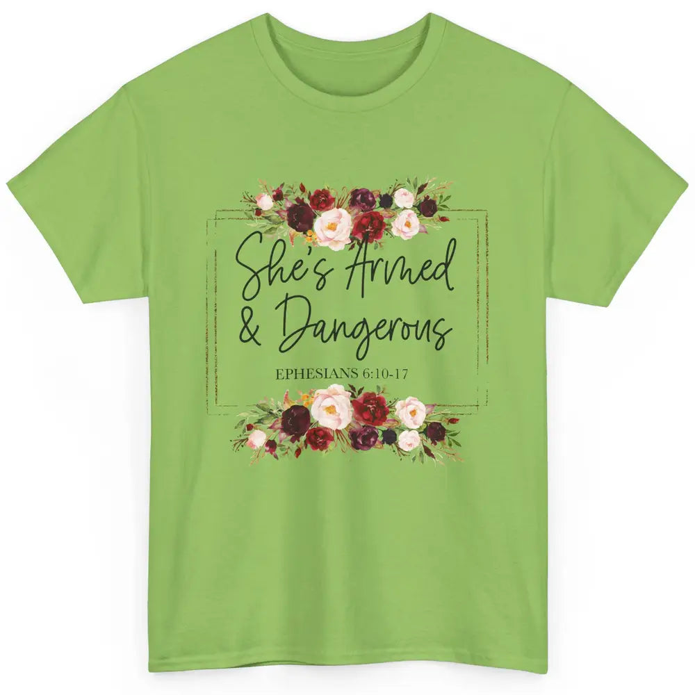 Floral She's Armed And Dangerous Bible Verse Christian Faith Classic Unisex T-Shirt