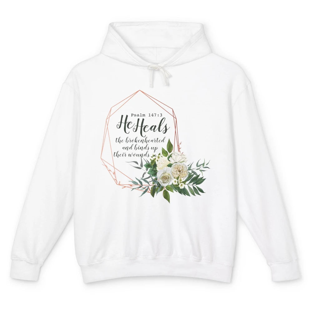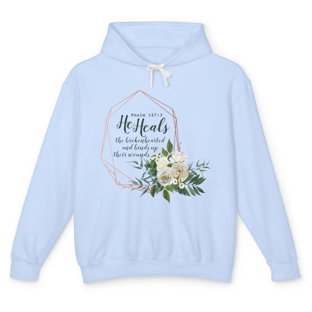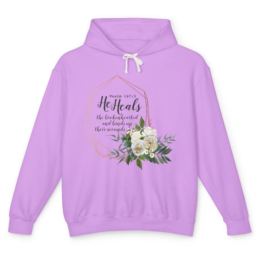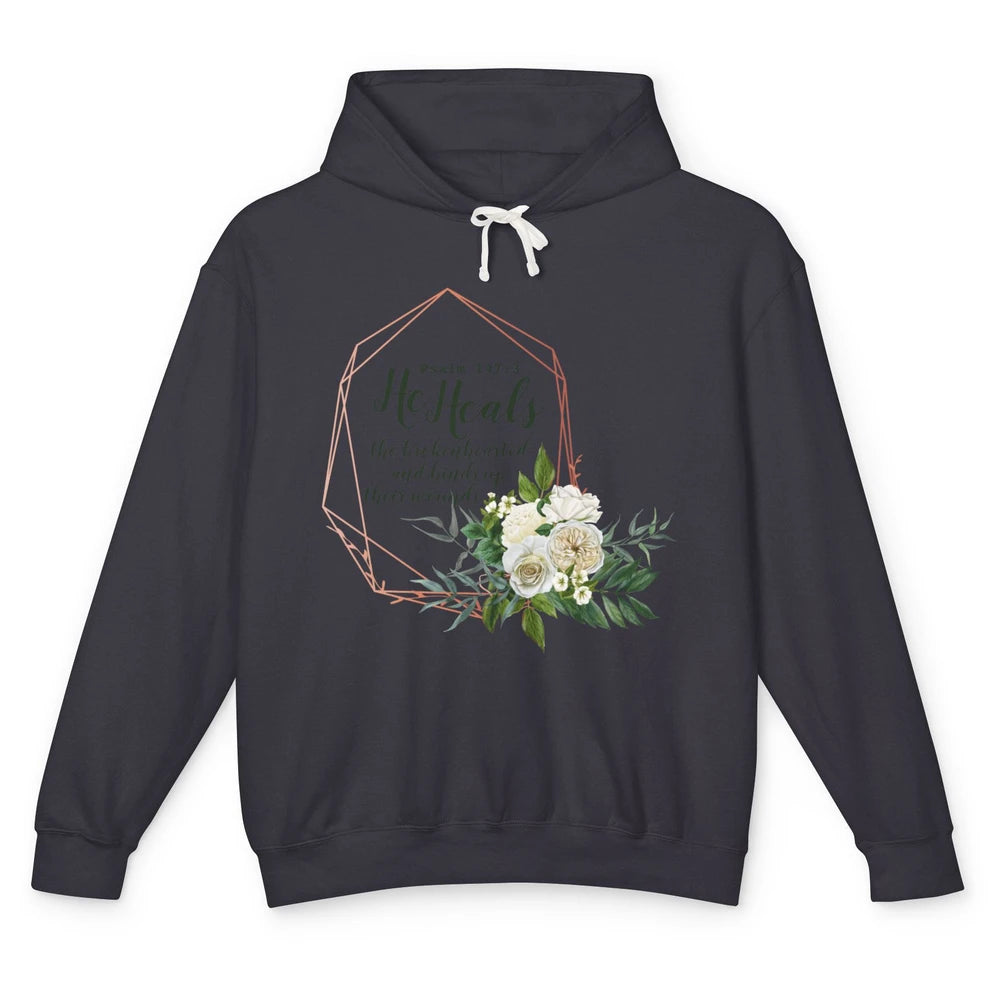 God Heal Brokenhearted Bible Verse Floral Christian Religion Unisex Lightweight Hoodie