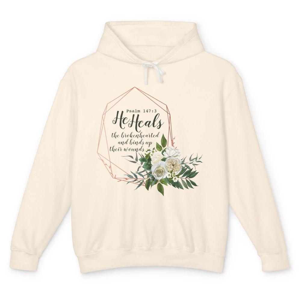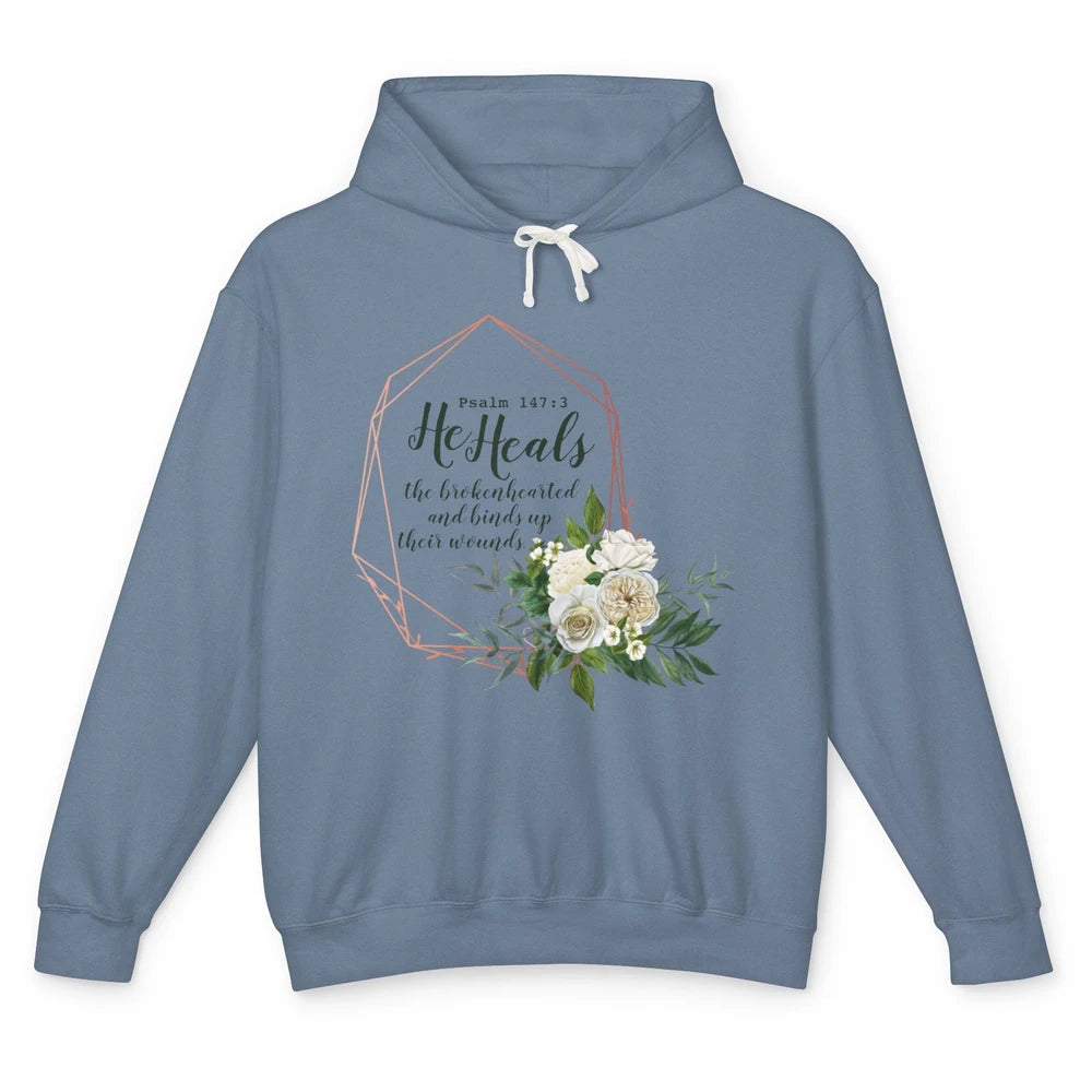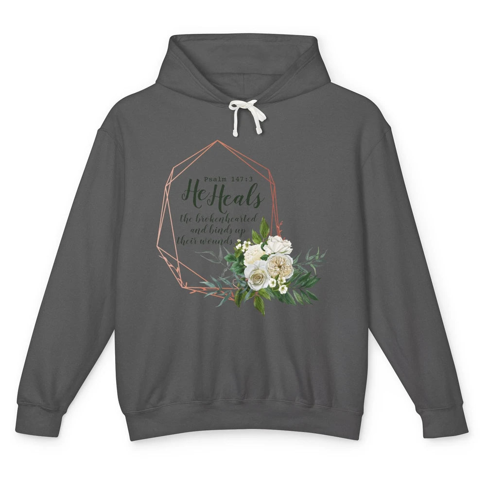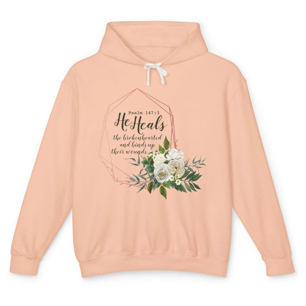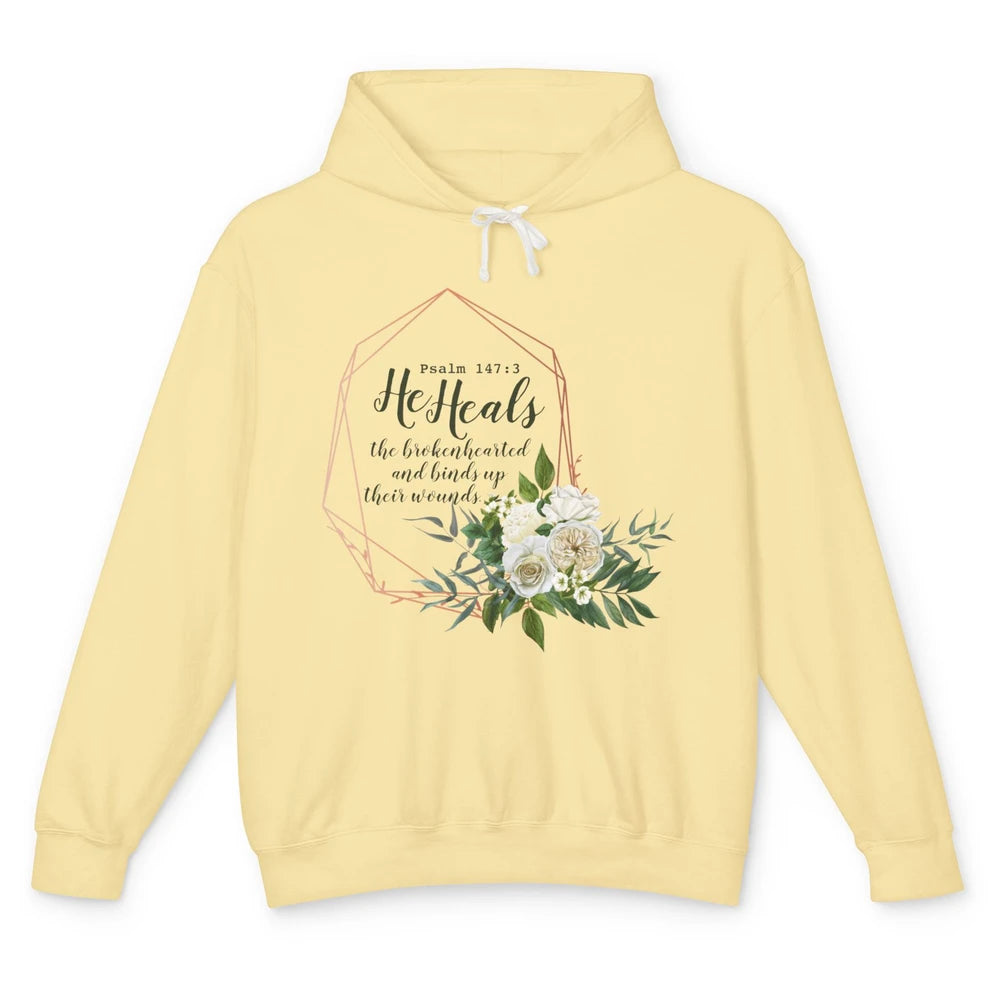 God Heal Brokenhearted Bible Verse Floral Christian Religion Unisex Lightweight Hoodie