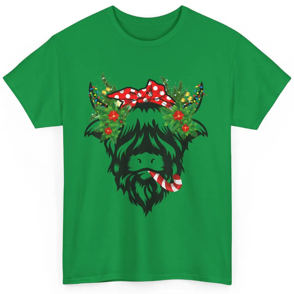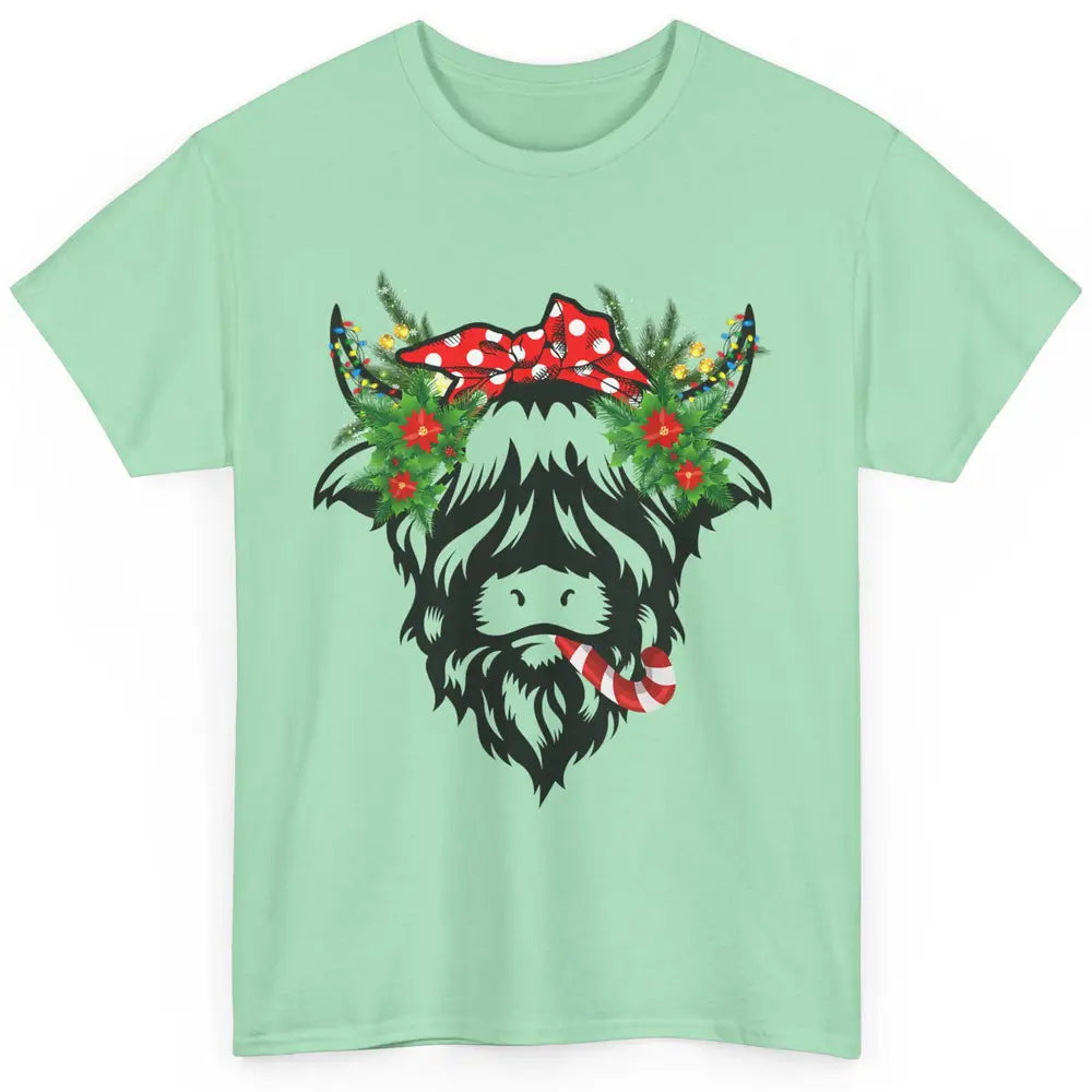 Highland Cow Funny Christmas Tree Xmas Farming Farm Animal Classic Unisex T-Shirt