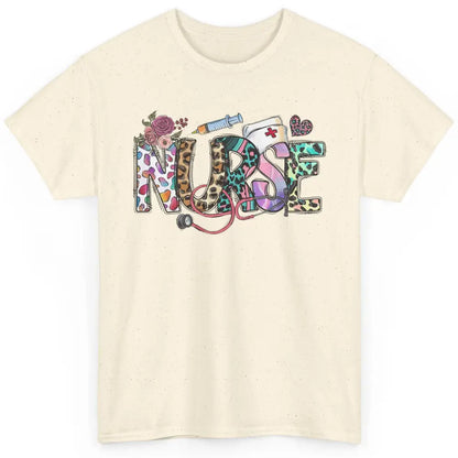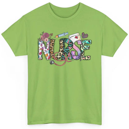 Nurse Life Nursing Registered Therapist Leopard Flower Boho Classic Unisex T-Shirt