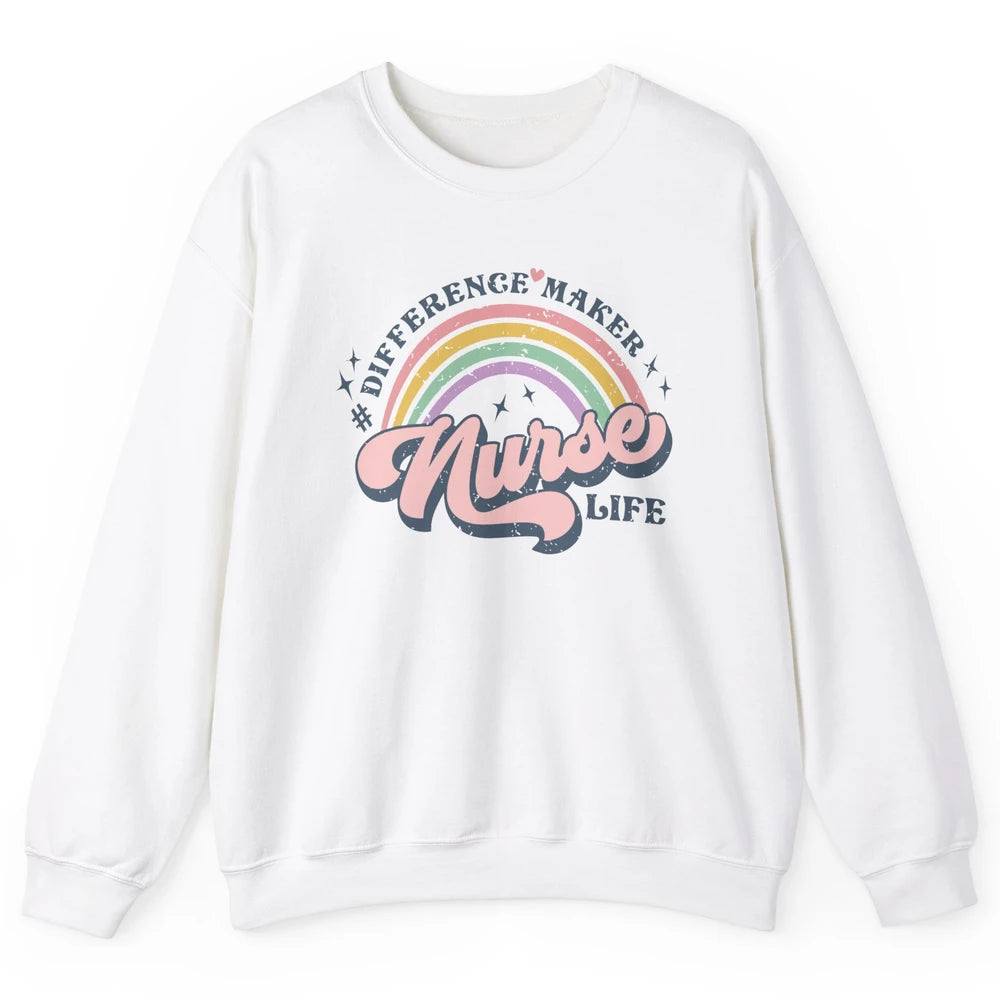 Nurse Life Rainbow Difference Maker Nurse Vibes Nursing Gift Unisex Crewneck Sweatshirt