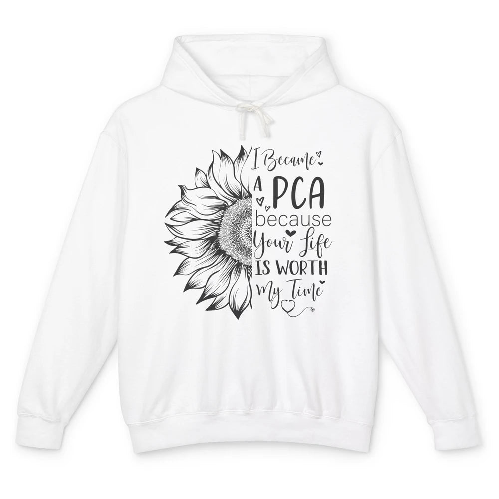 PCA Life I Became A PCA Your Life Woth My Time Nurse Life Unisex Lightweight Hoodie