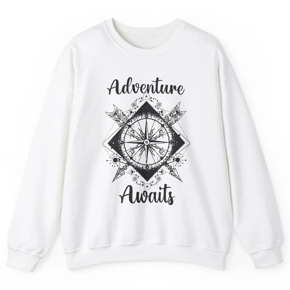 Retro Compass Mountain Adventure Awaits Camping Hiking Lover Unisex Crewneck Sweatshirt