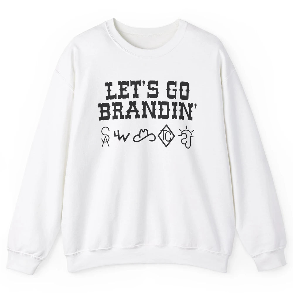 Retro Cowboy Hat Let's Go Brandin' Western Country Symbols Unisex Crewneck Sweatshirt