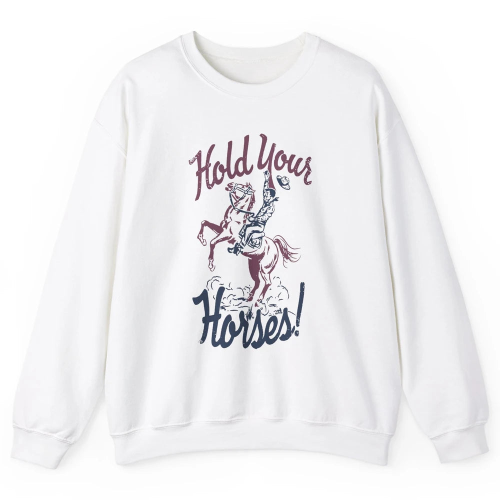 Retro Cowboy Hold Your Horses Western Country Rodeo Dad Gift Unisex Crewneck Sweatshirt