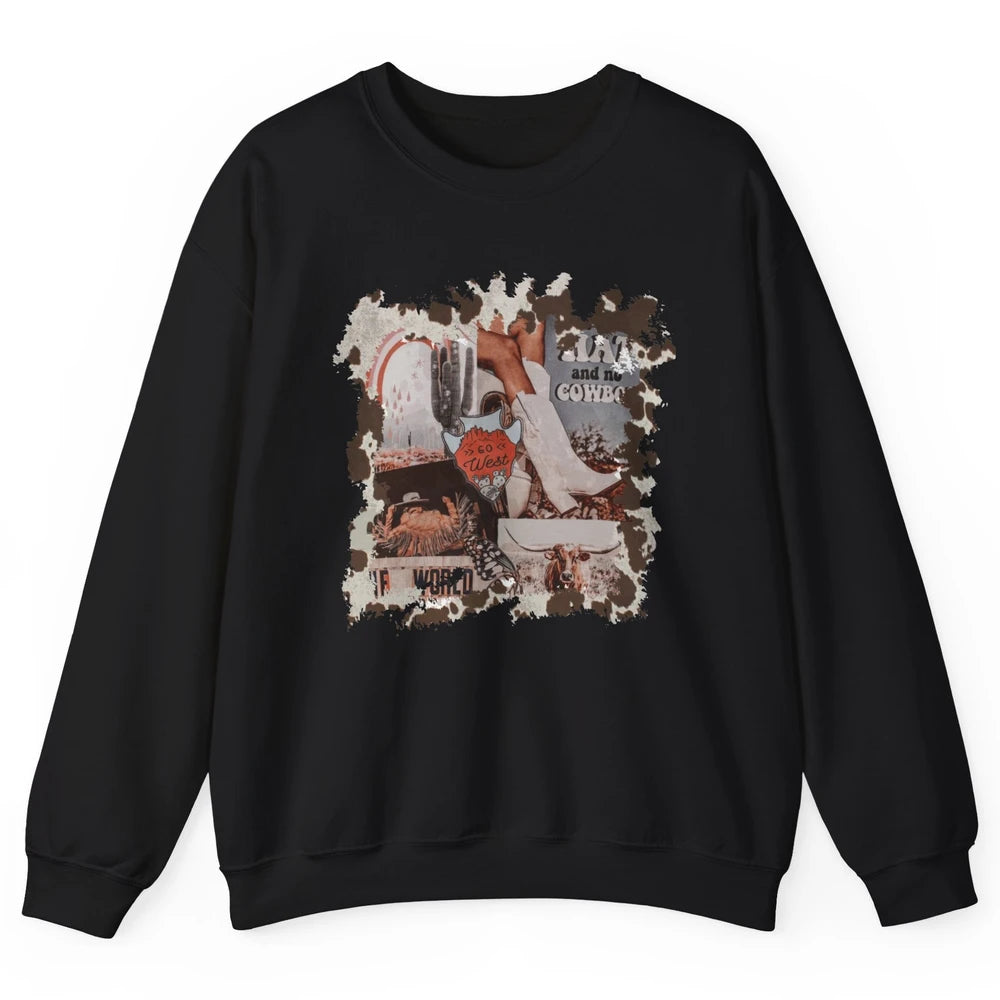 Retro Cowgirl Boots Desert Cactus Go West Western Country Unisex Crewneck Sweatshirt