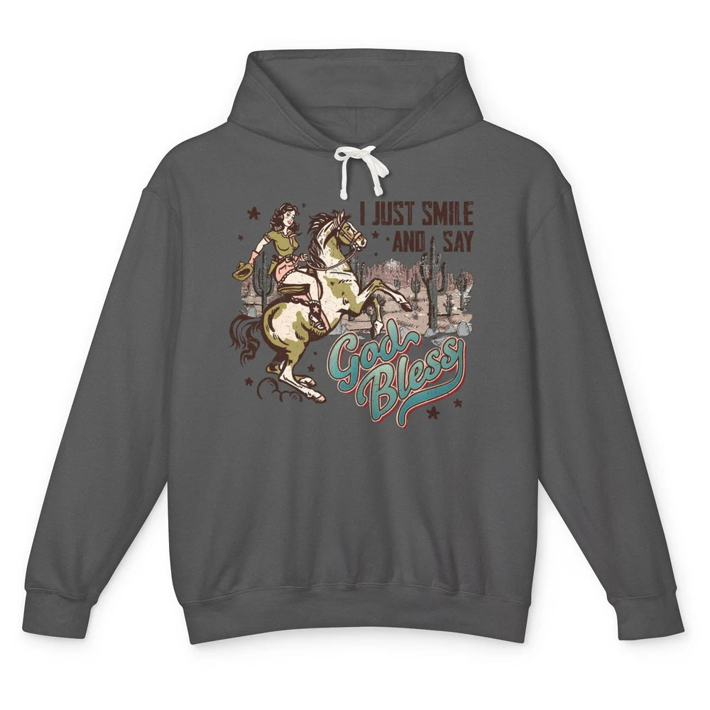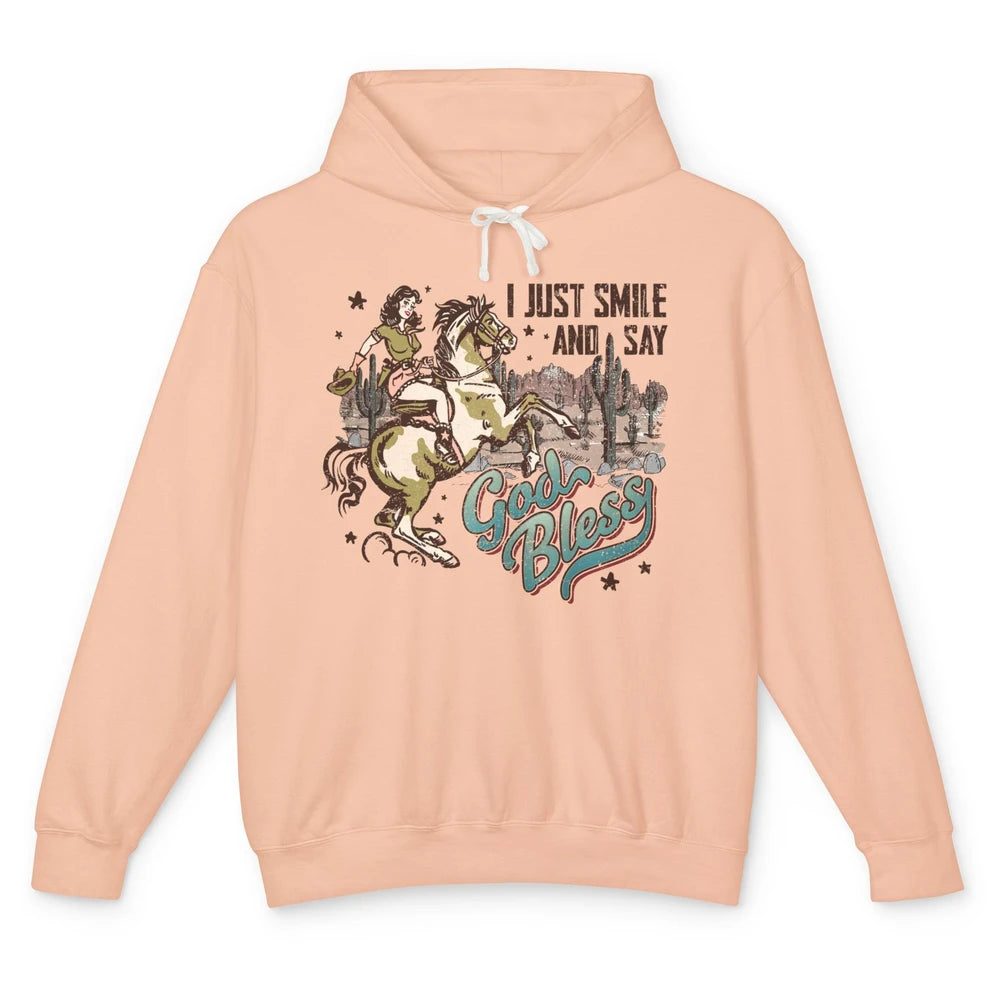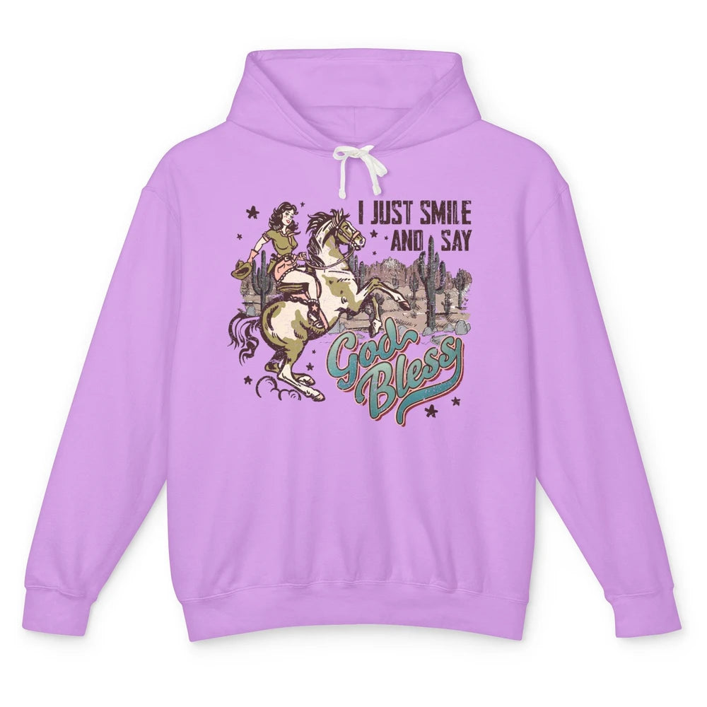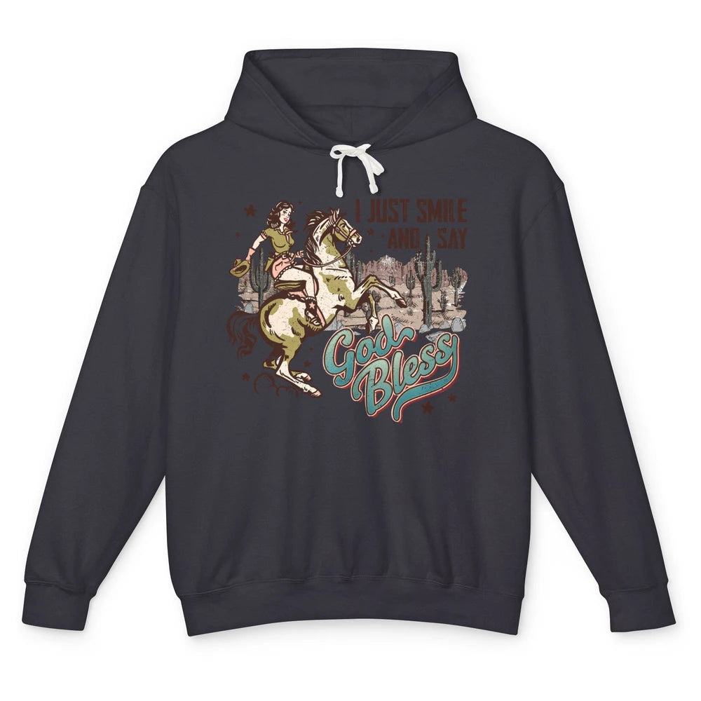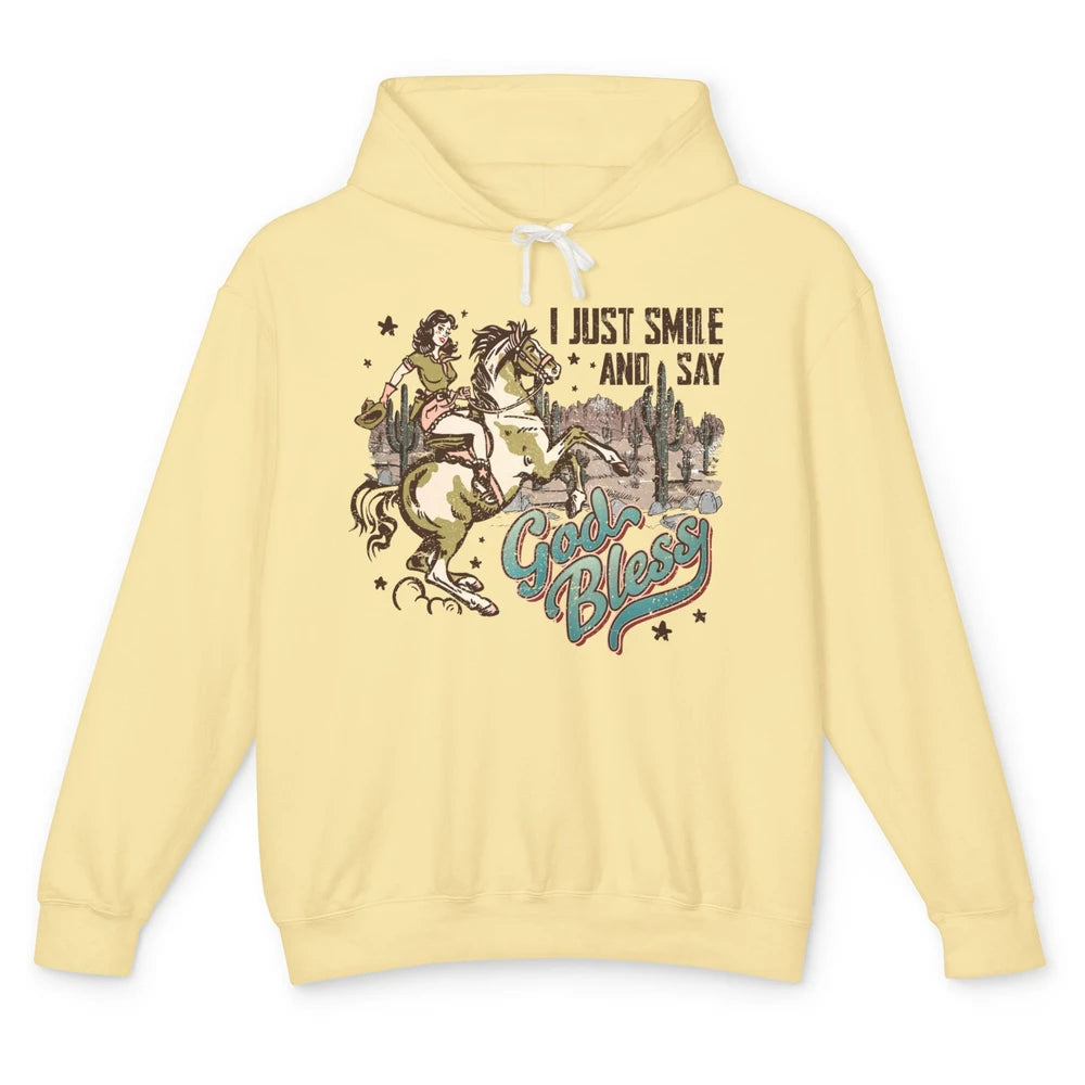 Retro Cowgirl Horsing I Just Smile And Say God Bless Western Unisex Lightweight Hoodie