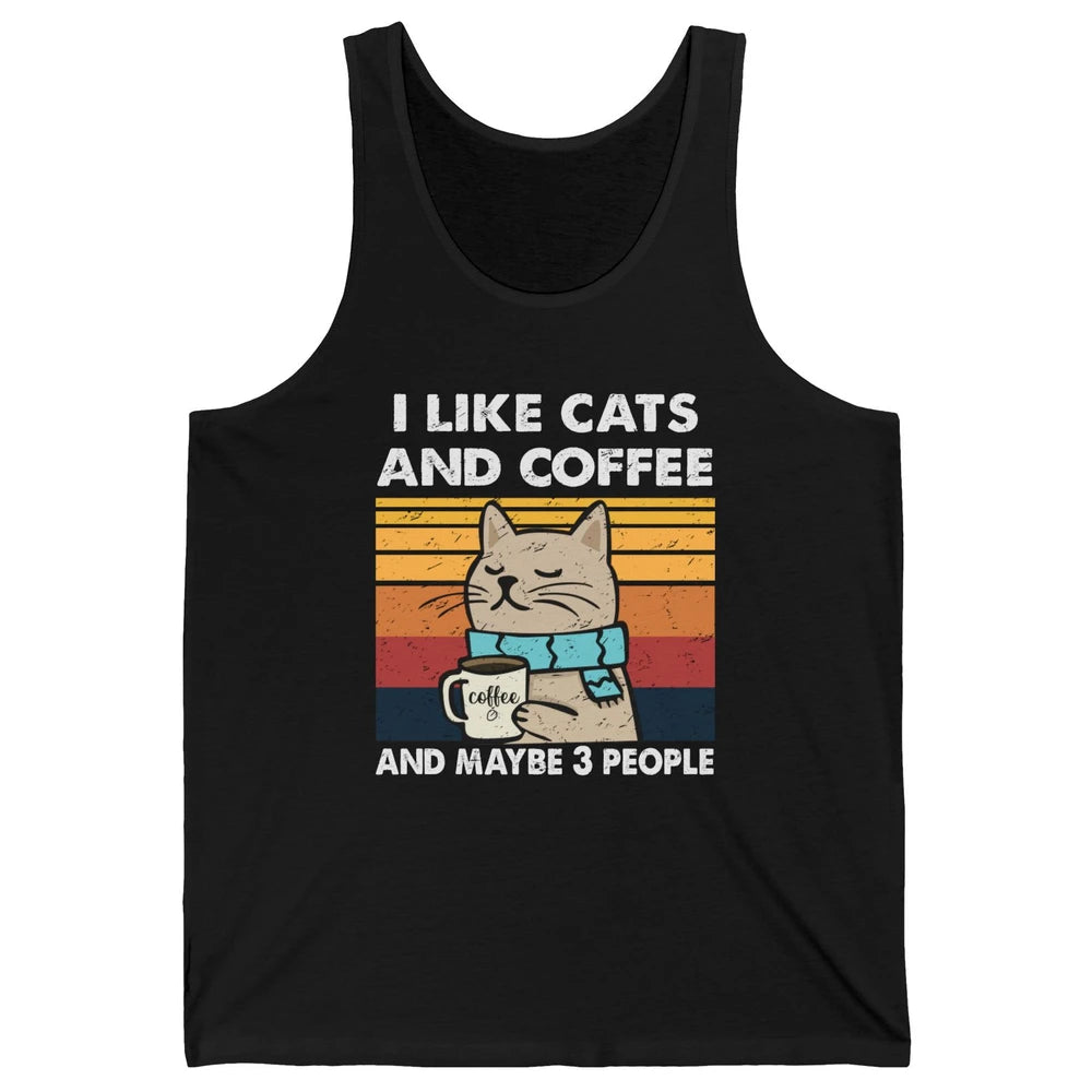 Retro Funny Fall Cat I Like Cats Coffee And Maybe 3 People Unisex Jersey Tank