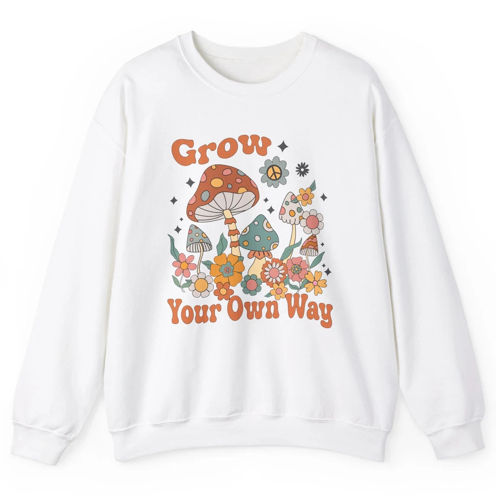 Retro Groovy Mushroom Grow Your Own Way Hippie Inspirational Unisex Crewneck Sweatshirt