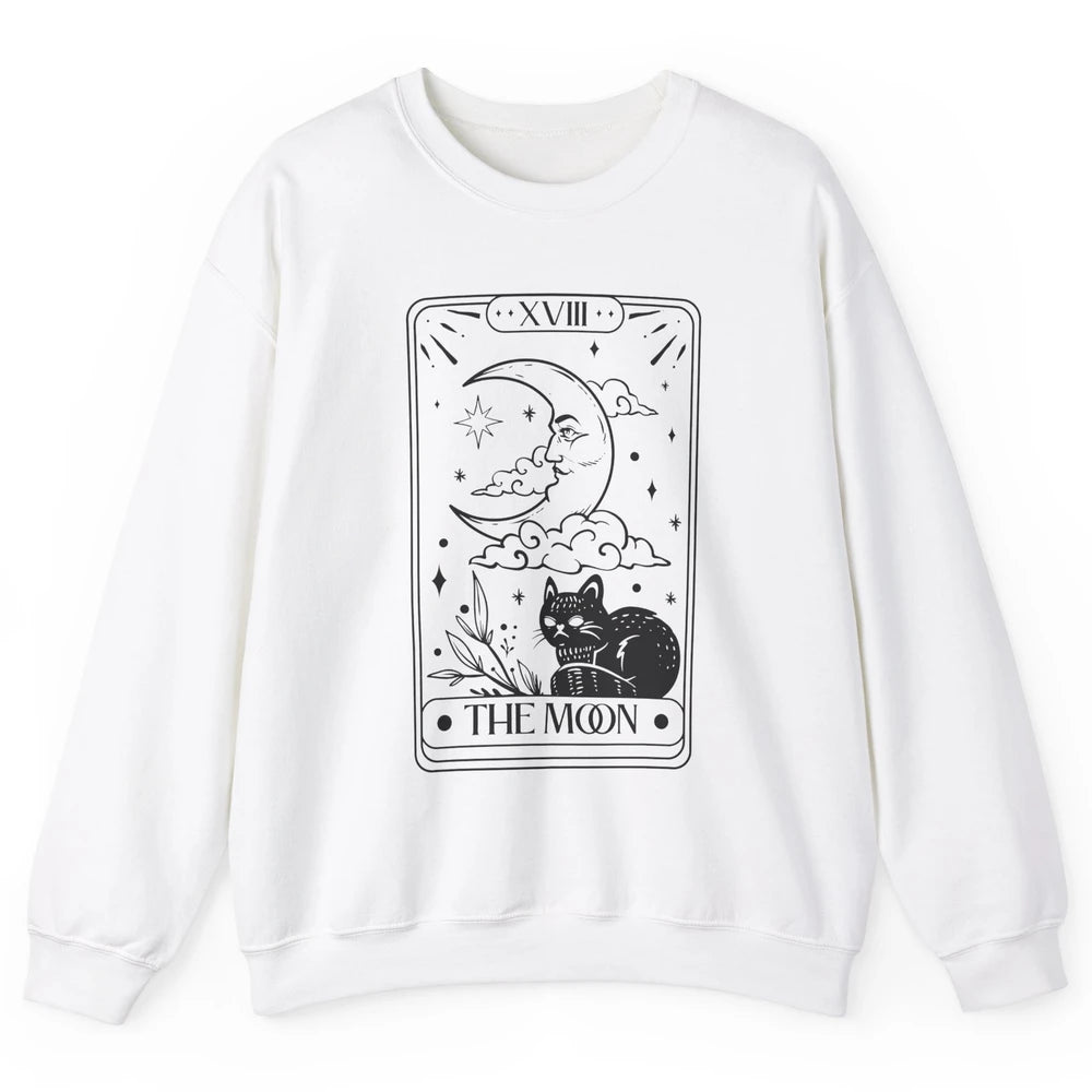 Retro Halloween Cat Witch The Moon Tarot Card Witchcraft Unisex Crewneck Sweatshirt