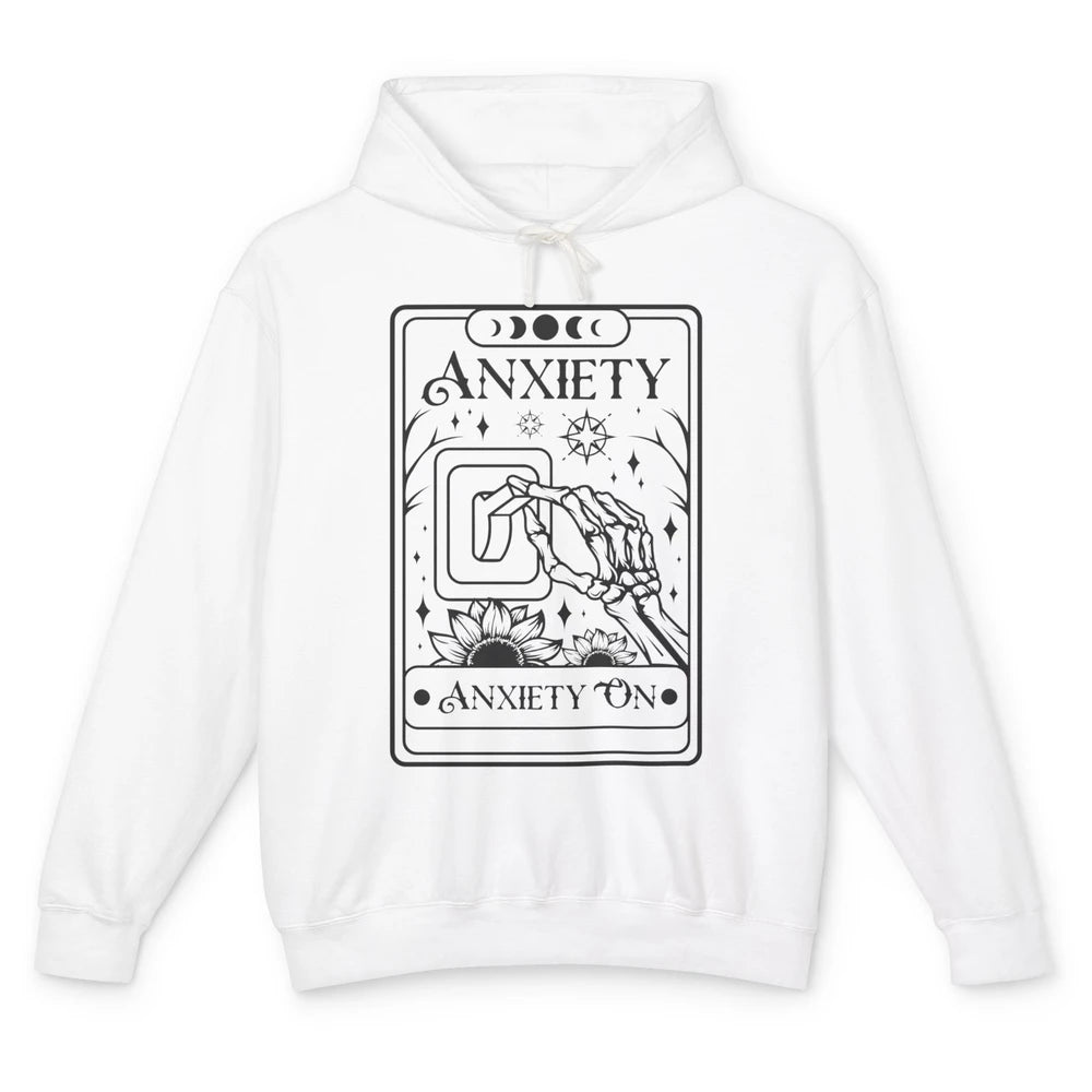 Retro Halloween Skeleton Hand Anxiety On Off Mental Health Unisex Lightweight Hoodie