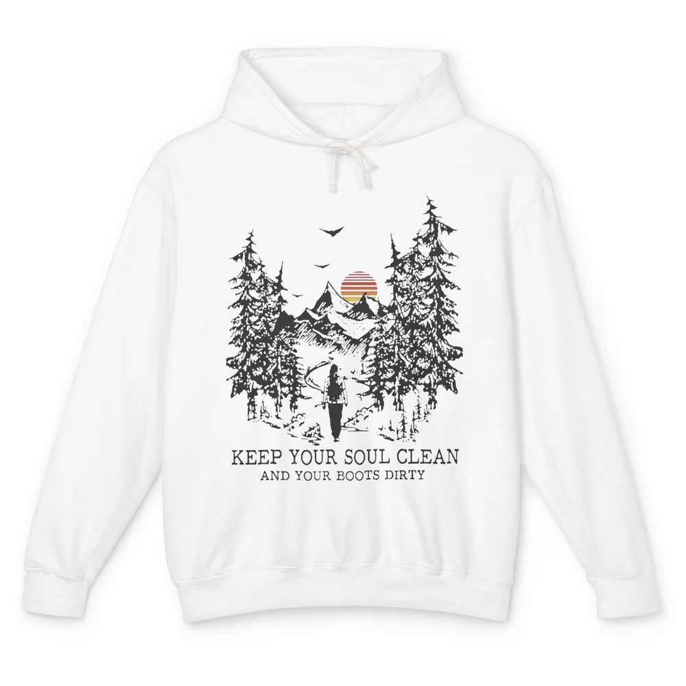 Retro Hiking Camping Keep Your Soul Clean & Your Boots Dirty Unisex Lightweight Hoodie