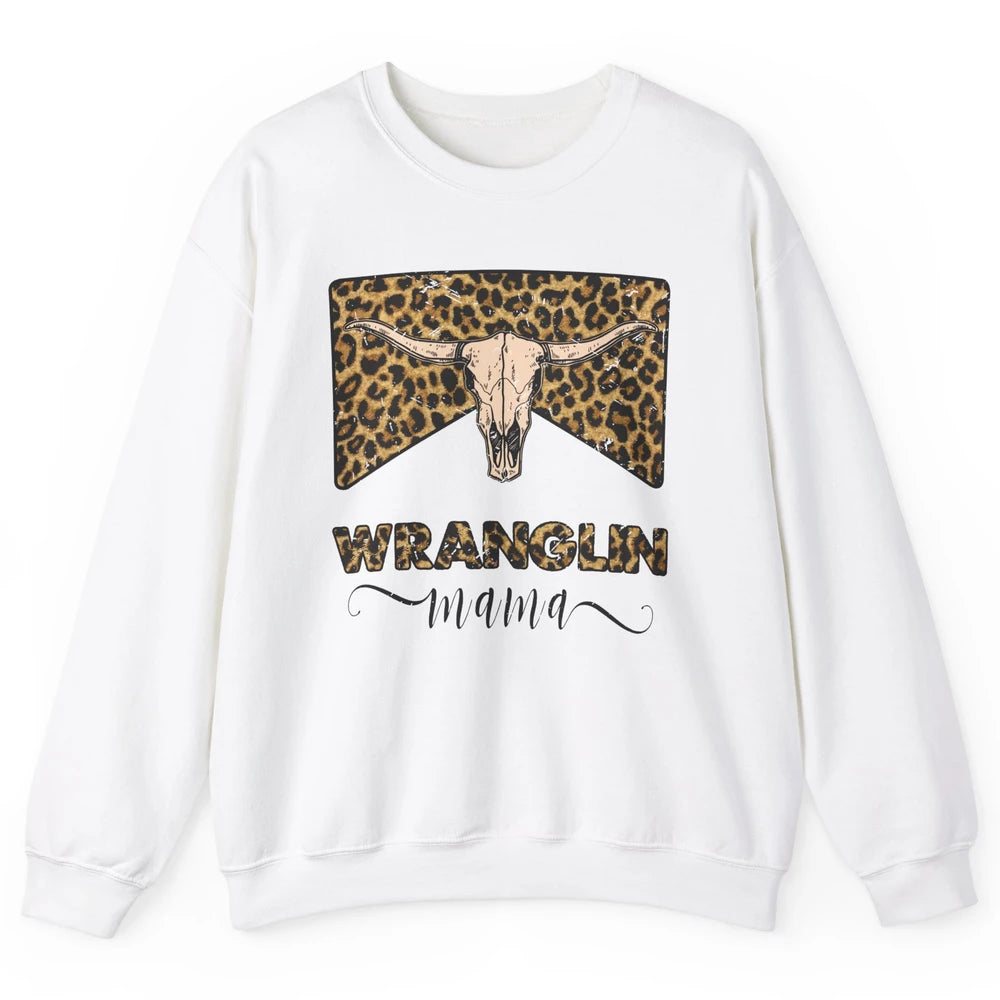 Retro Leopard Bull Skull Wrangling Mama Western Country Girl Unisex Crewneck Sweatshirt