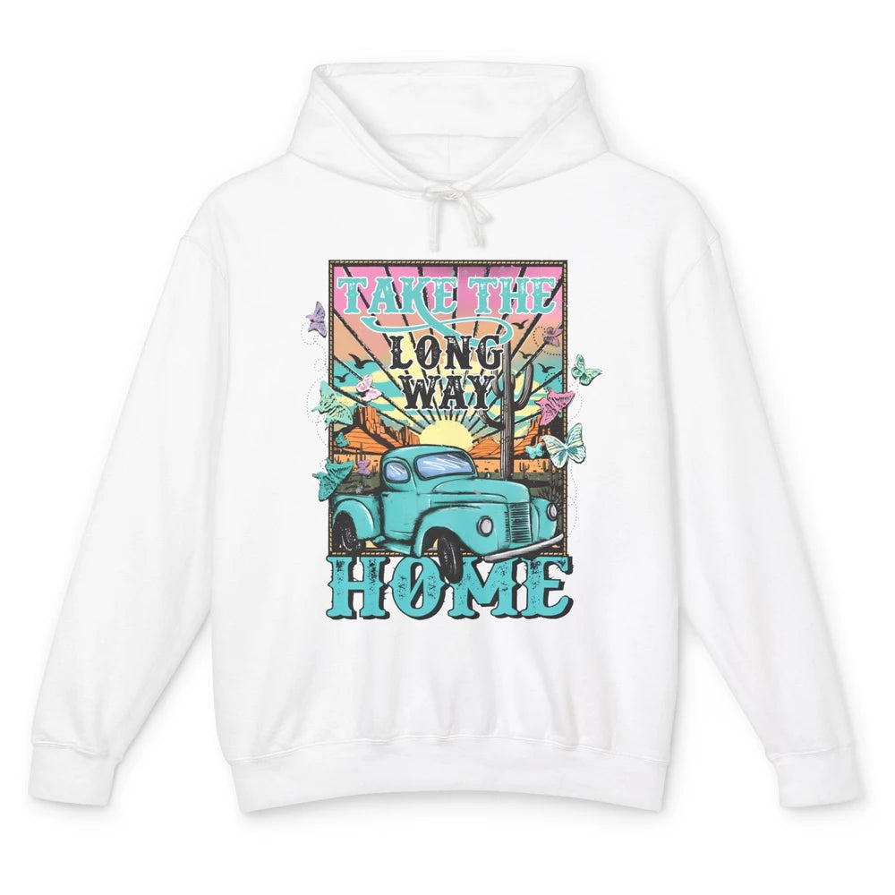 Retro Mountain Sunset Take The Long Way Home Western Country Unisex Lightweight Hoodie