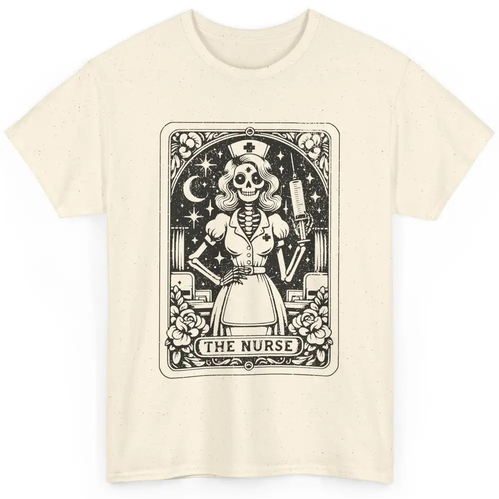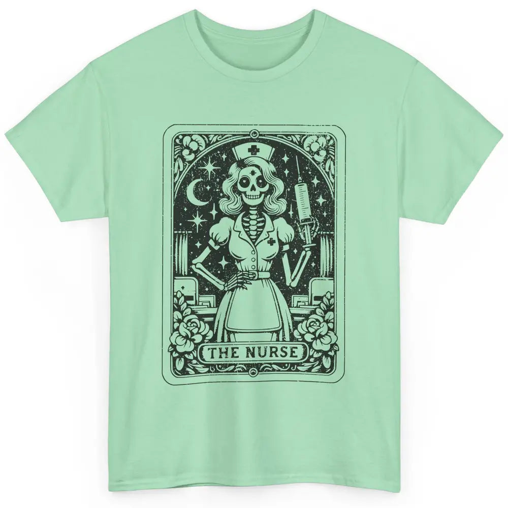 Retro Skeleton The Nurse Tarot Card Halloween Nursing Life Classic Unisex T-Shirt