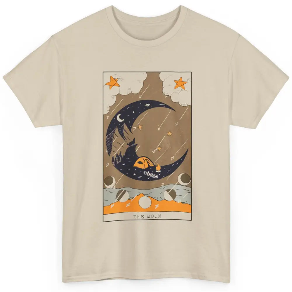 Retro Tarot Card Wolf Camping The Moon Campfire Wiccan Pagan Classic Unisex T-Shirt