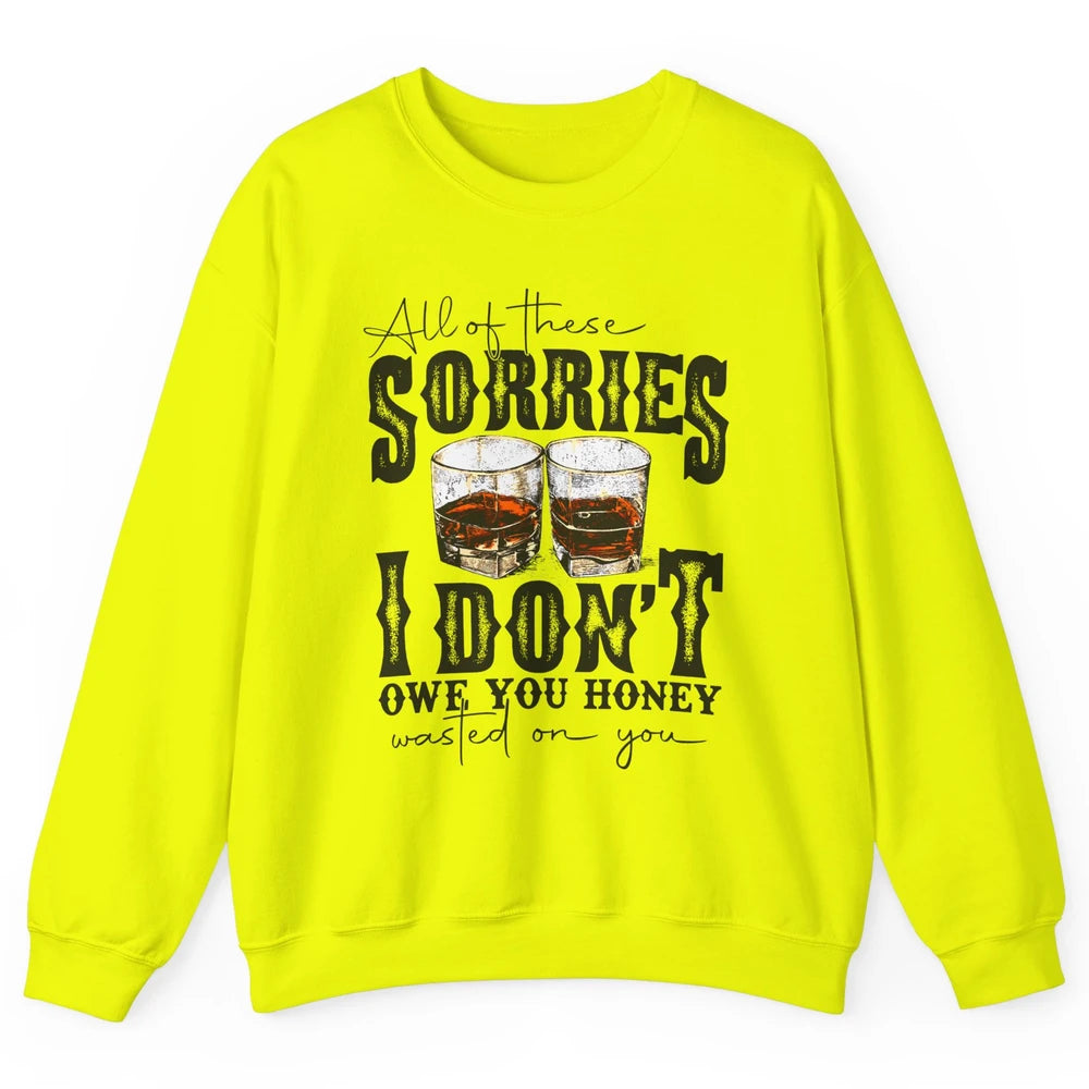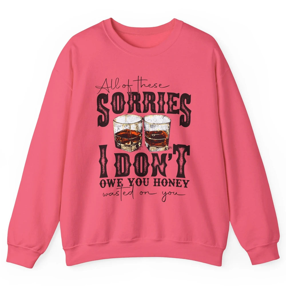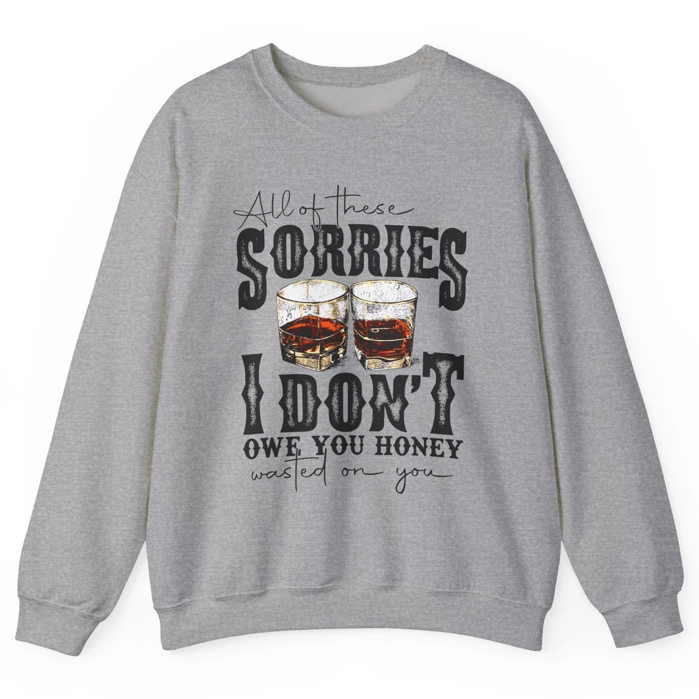 Retro Whiskey All Of These Sorries Wasted On You Western Unisex Crewneck Sweatshirt