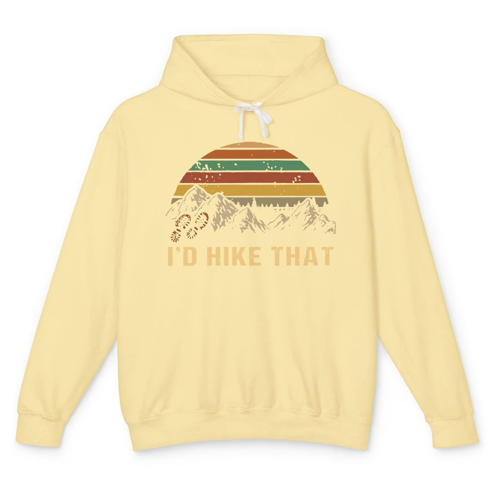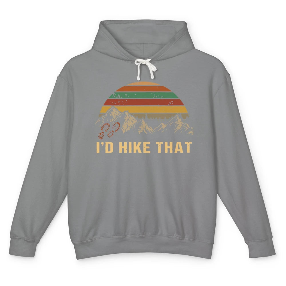 Vintage Mountain Hiking Boots I'd Hike That Adventure Hikers Unisex Lightweight Hoodie