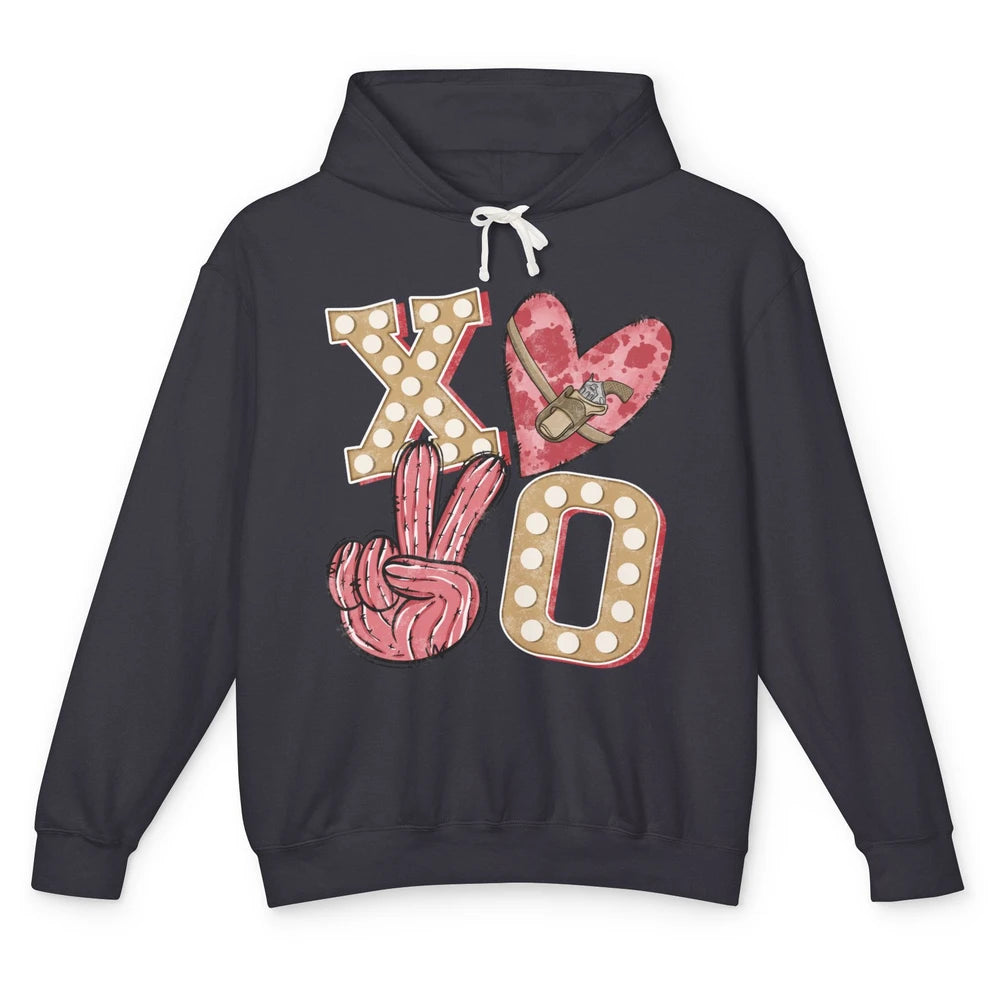 XOXO Hugs And Kisses Leopard Heart Cowboy Love Rodeo Western Country Unisex Lightweight Hoodie